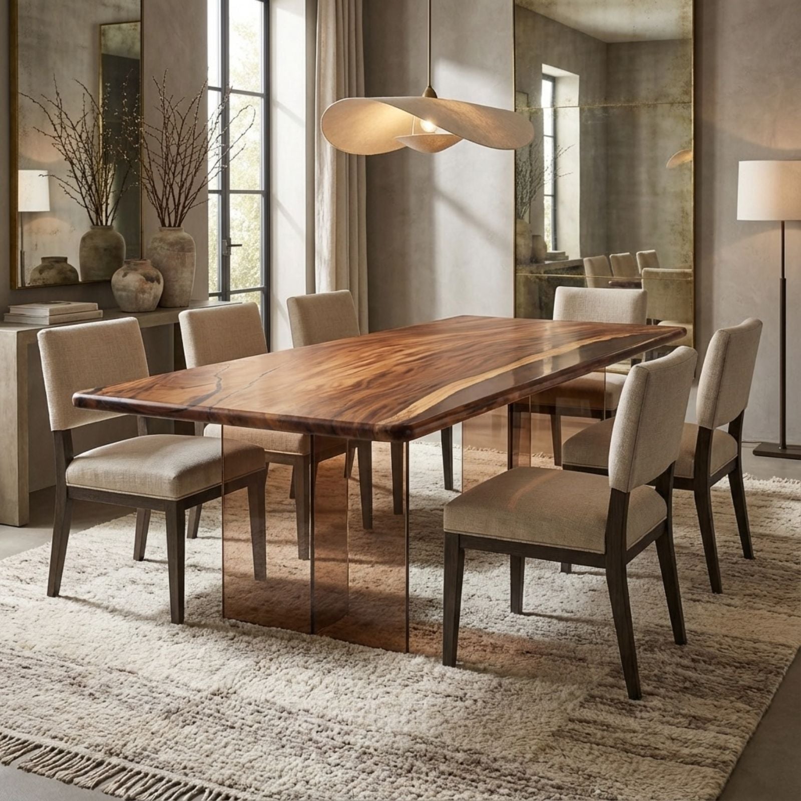 Mirage Rectangular Monkey Pod Dining Table with Plexiglass Legs